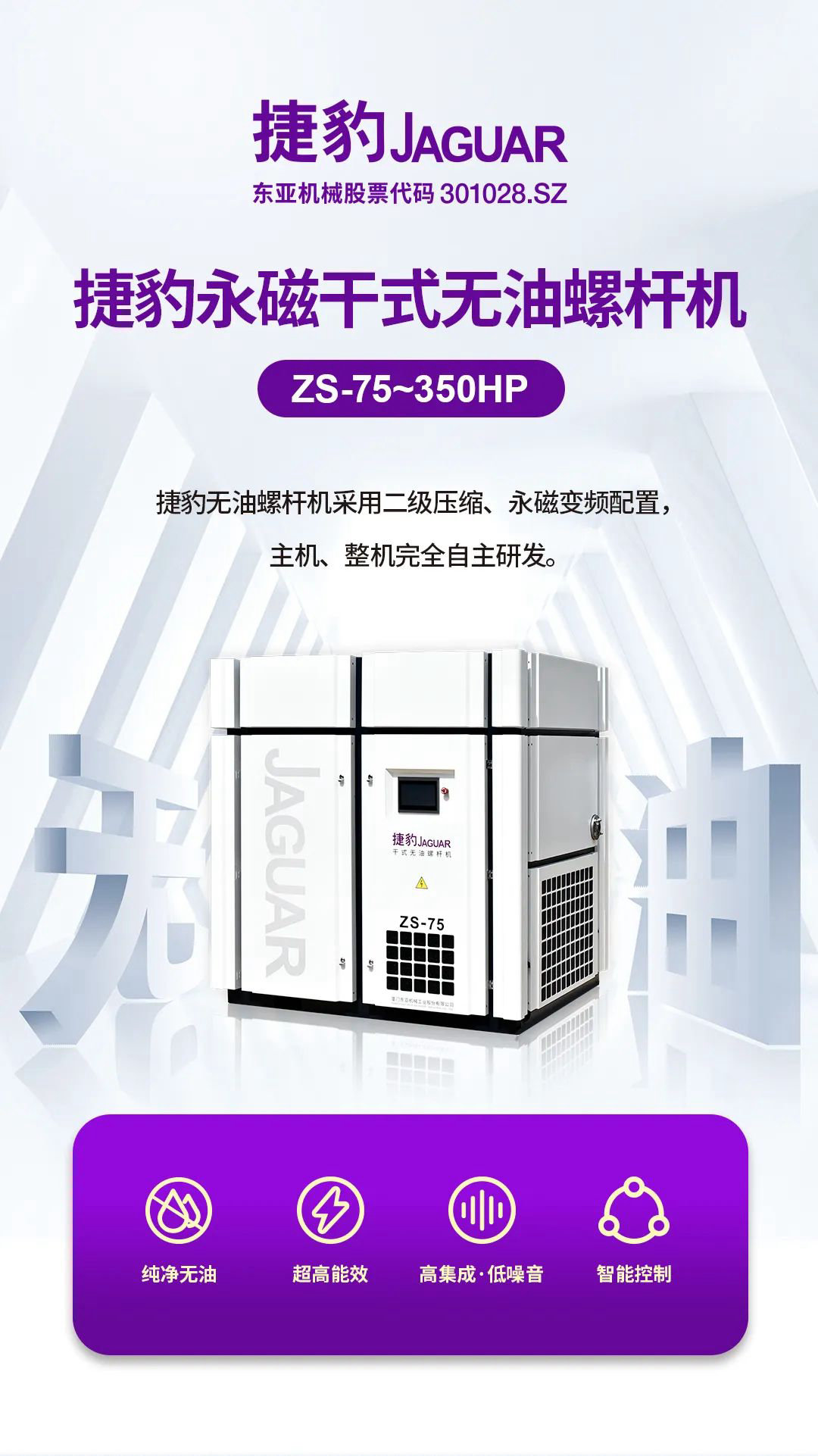 【無油智造】捷豹永磁干式無油螺桿機卓爾不凡